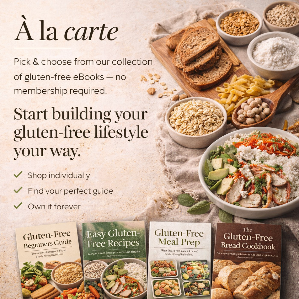 All of our Gluten-Free eBooks are available for individual purchase. You don’t need a membership to get started. Simply select the eBook that best fits your needs and begin building your gluten-free lifestyle with guidance.